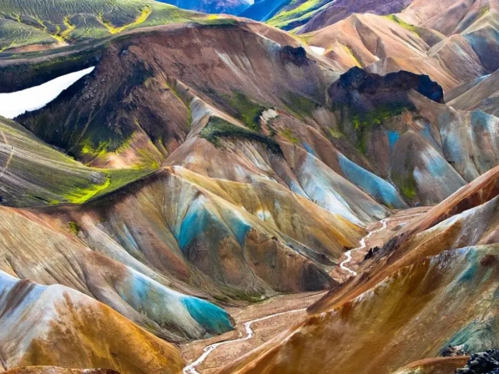 A Landmannalaugar, i colori si fanno incredibili: montagne d’oro, laghi turchesi, vapori che salgono dalla roccia. È un luogo che sembra appartenere a un sogno, dove anche il tempo si ferma. Verso est il paesaggio cambia ancora, tra ghiacciai immensi e lagune di ghiaccio dove galleggiano iceberg silenziosi. Il Vatnajökull domina l’orizzonte, regale e misterioso. Poi i vulcani del nord, il Lago Mývatn e le fumarole che disegnano la terra: qui l’Islanda mostra la sua forza primordiale, viva, inarrestabile.