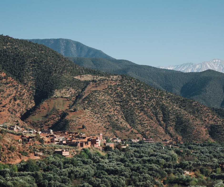 Quando il cuore desidera silenzio, le Montagne dell’Atlante appaiono all’orizzonte come un abbraccio minerale. Tra i loro versanti si snoda la Valle dell’Ourika, verde e viva, punteggiata da villaggi berberi, orti, uliveti e cascate. Qui il tempo rallenta, e ogni sguardo si perde tra le linee sinuose della natura e l’autenticità della vita rurale.